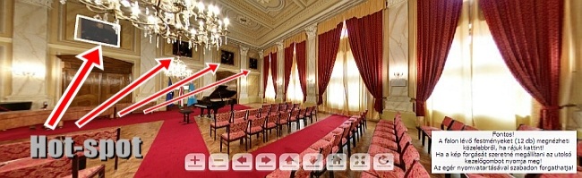 Gömbpanoráma, melyen hot-spotok vannak elhelyezve.