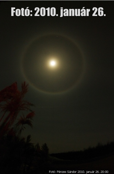 Akkor a világegyetemre, a naprendszerre, a bolygókra, az általunk amatőr eszközökkel még fotózható holdra gondoltam. Ezen belül is egy korábbi fotósorozatra, mely egy ugyan ilyen jelenség alkalmával készült ugyanitt Gyulán, majdnem két évvel ezelőtt. A "fiók mélyéről" galériában szerepeltettem volna, azonban a tegnap esti (2012.december 29.)sétám alkalmával a természet közbeszólt. Felnéztem az égre, arra gondoltam, milyen szerencsém volt akkor, hogy találkozhattam a jelenséggel. Még az is eszembe jutott, hogy milyen ritkán adódik ilyen az életben, annak ellenére, hogy van aki azt mondja ez nem annyira ritka, minden esetre néhány dolog együttállására van szükség ehhez. Megfelelő páratartalom, hőmérséklet és még telihold is. Ez tulajdonképp egy optikai jelenség, mely fizikailag megfoghatatlan, a fény ilyetén való formálásának megtörésének eredője a mi csillagunk, a nap, mely minden fény-kép és életünk alapja. Ahogyan ezeken morfondíroztam, egyre csak kirajzolódott előttem a gyönyörű kör-gömb. A gömbök visszaköszöntek. :-)